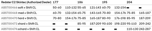 Längen: 177, 186, 195, 204 cm
