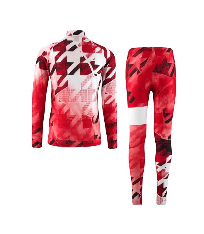 Dimple Elastic mit Ärmel im Airstream-Design und Rücken aus Race Vent, hochelastisch, schnell trocknend, atmungsaktiv, Allover-Druck, Stehkragen, extralanger Frontzip, Langarm, gesäumter Bundabschluss,Arm- und Beinlänge open-cut, lange Hose mit Bundweitenregulierung.