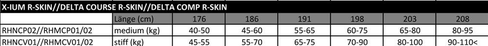 Längen: 186, 191, 198, 203, 208 cm