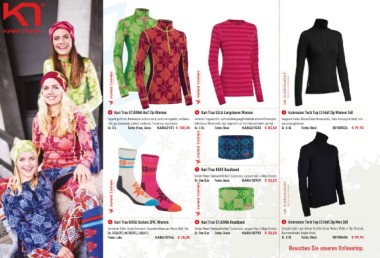Verstärkte Sohle, flache Zehennaht, Rippenbündchen aus Merino-Woll-Mix. Breites Merino Stirnband mit Kari Traa Initialen, Jacquard Knit, 4-Wege-Stretch. Ganzjahresshirt aus dünner leichter feiner Merino Wolle in Rip Material,
