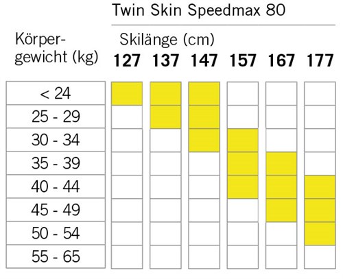 Mit dem Twin Skin Speedmax 80 Jr kann die Rennkarriere beginnen. Egal ob im Training oder Wettkampf, die Bauweise mit Air Core Basalite Kern sorgt für ein leichtes Laufen, während die Twin Skin Fellstreifen auch bei harten und eisigen Bedingungen einen sicheren Abstoß bieten. Das rennorientierte Speed Grinding 2.0 führt bei allen Bedingungen zu idealen Gleiteigenschaften für den entscheidenden Vorsprung im Ziel.