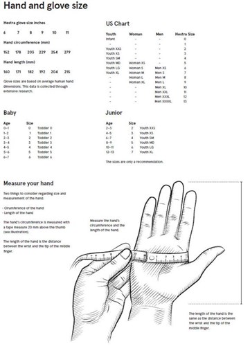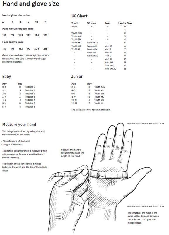 Das Maßband darf die Hand nur lose umschließen. Handumfang siehe Tabelle
