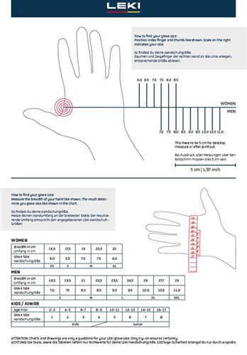 Das Maßband darf die Hand nur lose umschließen. Handumfang siehe Tabelle