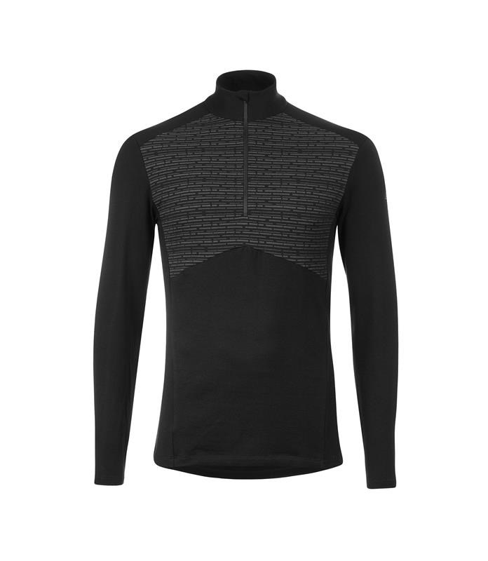 Halfzip mit Stehkragen, Hybridstrick-Einsatz (Brust vorne), perfekter Schweißtransport, elastisch, schnell trocknend, wärmeisolierend, Langarm, gesäumte Arm- und Bundabschlüsse.