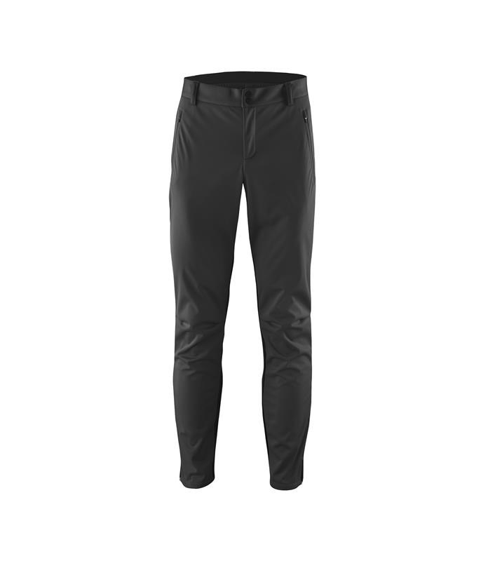 Airblocc Softshell Light mit Thermo-Innenvelours (Rückseite), winddicht, wasserabweisend, atmungsaktiv, geformte Knie, Hosenzip, Gürtelschlaufen, 2 Zip-Eingrifftaschen, elastischer Bund, kurze reflektierende Beinzips, Reflektoren.