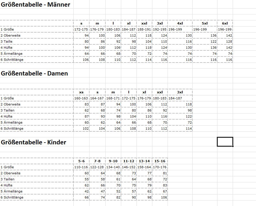 Brustumfang cm |