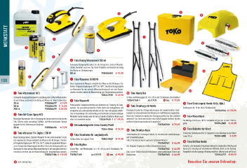 5 9 B WerkStatt 3 8 1 C 4 6 4 TokoRacingWaxremover500ml Schonende Reinigungsfüssigkeit für alle Belagsarten. Entfernt Waxrück- stände, besonders auch von Top Finish Produkten und bereitet den Belag 7 fürs Waxen vor. Gleitwaxreiniger. E 500ml TO5506501 € 19,95 2 108 5 TokoWaxeisenT8800W Dieses ergonomische Waxgerät ermöglicht das Waxen in alle Richtungen. Stu- fenlose Temperaturregelung von 100°C bis 160°C. Die dicke Druckgussplatte aus Aluminium für eine optimale Wärmespeicherung ist mit einer Rauten- A 1 TokoWaxremoverHC3 struktur versehen, welche die Waxverteilung und -komprimierung optimiert. A TokoHandyBox TO5547181 € 49,95 Schonende Reinigungsfüssigkeit für alle Belagsarten. Entfernt Waxrückstän- Kl. Wax- und Werkzeugbox 35 x 18 x 28 cm mit 3 Schubladen. Verschließbar! de und Schmutz und bereitet den Belag aufs Waxen vor. Ohne Trichlorethan. 6 TokoWaxprofl TO5547168-1 alt:€99,95 n neu: € 79,95 250ml TO5506497 € 9,99 D TokoStrukturgerätNordicKit(o.Abb.) 500ml TO5506498 € 14,95 Professionelle Einspannvorrichtung aus Aluminium zur Fixierung von Lang- B TokoStrukturgerätNordic 2500ml TO5506499 € 55,95 laufskis. Die grossdimensionierten Profle bieten viel Aufagefäche und Strukturgerät Nr. 10 mit allen 3 Strukturrollen. ermöglichen ein professionelles Arbeiten am Ski. Kann mit optional erhältli- Ergonomisch geformtes Belagstrukturiergerät mit auswechselbarer Struk- TO5540964 € 139,95 2 TokoGel-CleanSprayHC3 chen Schraubzwingen (im Lieferumfang nicht enthalten) auf jeder beliebigen turwalze zum unkomplizierten Strukturieren der Lauffäche von Langlaufskis. E TokoWaxschürze Durch das Strukturieren werden die Gleiteigenschaften des Skis erheblich Werkbank montiert werden oder mit den als Zubehör erhältlichen Beinen auch Neuartiges Waxremover-Gel zur Reinigung der Abstosszonen von klassischen ohne Tisch verwendet werden. TO5549965-1 € 199,95 verbessert. Das Gerät wird mit der roten Rolle (Diagonal-Struktur) für den Hochwertige Schürze aus 100 % Baumwolle mit grossen Taschen. Einheits- Skis. Entfernt selbst hartnäckige GripWax- und Klisterrückstände. Optimal mittleren Schneetemperaturbereich ausgeliefert. geeignet für die Entfernung von GripSprays. 7 SchraubzwingenfürCrossCountryProfl TO5540960 € 79,95 größe. TO5542805 € 29,95 250ml TO5506496 € 9,99 TO5549866 € 19,99 C TokoStruktur-Rolle F TokoSkihalterfürWand 3 TokoWaxeisenT14Digital1200W 8 TokoStandbeinefürLanglaufprofl Strukturwalzen für Strukturgerät Nordic, für alle Arten von Strukturierungen Praktisches Skihaltenband für 16 Langlaufskis zum Befestigen an der Wand. Neues leistungsstarkes, digitales Waxgerät für den professionellen Einsatz. Faltbare Beine für Langlauf-Profl. TO5549867 € 79,95 und Schneebedingungen. Länge 95 cm TO5544000 € 9,99 Das ergonomische Design ermöglicht das Waxen in alle Richtungen. Stufenlo- Gelb: X-Struktur für warme und nasse Schneeverhältnisse G TokoSkiViseNordic se Temperaturregelung von 100 °C bis 160 °C, wobei der eingebaute Mikropro- 9 TokoBigBox TO5540961 € 44,95 zessor Temperaturschwankungen kontrolliert. Die starke Druckgussplatte aus Rot: Diagonal-Struktur für mittlere Schneetemperaturen Einfache, sehr kompakte Einspannvorrichtung für Langlaufskis (Skating und Aluminium für eine optimale Wärmespeicherung ist mit einer gekurvten Rau- Grosse Wax- und Werkzeugbox 46 x 18 x 36 cm mit 6 Schubladen. Ver- TO5540962 € 44,95 Klassisch). Fixierung mit verstellbarem Mittelteil direkt an der Bindung. tenstruktur versehen, was die Waxverteilung und -komprimierung optimiert. schließbar! Blau: Linear-Struktur für kalte Verhältnisse, sowie grobkörnigen Schnee und Kompatibel mit allen gängigen Bindungsmodellen. Optimal auch auf Reisen. TO5547186 € 119,95 TO5547169 alt:€119,95 n neu: € 99,95 Kunstschnee TO5540963 € 44,95 TO5544272 € 89,95 n nicht rabattierfähig Besuchen Sie unseren Onlineshop:
