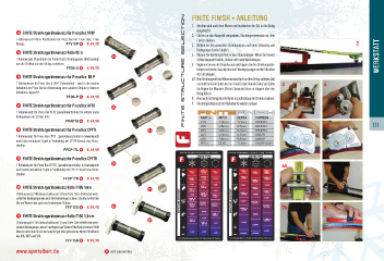 Finite FiniSh • Anleitung 1. Struktur wird nach dem Waxen und Ausbürsten der Ski in den Belag eingebracht. E FINITEStrukturgeräteeinsatzfürPressBoxV10P 2. Ski fest in das Waxprofl einspannen. Strukturgeräteeinsatz vor dem 1 Rolleneinsatz V10 in Pfeilstruktur für Press Box mit 1 mm Tiefe, 1 mm Einsatz säubern. Versatz. FFV10Pn € 49,95 3. Wählen sie den passenden Struktureinsatz nach dem Schneetyp und 2 Bedingungen (siehe Tabelle). F FINITEStrukturgeräteeinsatzRolle00-G 4. Klicken Sie den Einsatz fest in den Strukturkörper. Wenn der Einsatz 1 Rolleneinsatz Planstruktur für Finite Finish Strukturgeräte. Wird benötigt E richtig eingesetzt wurde, drehen sich beide Walzen körper. WerkStatt um alte Struktur aus dem Belag zu drücken. 5. Beginnen Sie von der Skispitze aus und kippen Sie den Strukturgeräte- FF00-G n € 59,95 körper nach vorne, dass die inneren Führungsspangen an den Skiseiten www.aceco.com/fi niteskitools.com der Ski anliegen. www.fi niteskitools.com G FINITEStrukturgeräteeinsatzfürPressBox00-P F 6/7. Nun Strukturgerät mit Walzeneinsatz fach auf den Belag aufegen (6a) info@aceco.com 1 Rolleneinsatz für Press Box D 00-P. Planstruktur - wird in die vordere und mit Druck von Spitze bis zum Ende (7a bei Skateski) oder von Spitze 3 4 Aufnahme der Press Box bei Verwendung einer anderen Struktur in hinterer bis Beginn der Waxzone (7b bei Classicski) ohne zu stoppen über den Aufnahme eingesetzt. Belag führen. FF00-P n € 49,95 8. Nun noch mit Belagsbürste Nylon in Laufrichtung die Struktur säubern. H FINITEStrukturgeräteeinsatzfürPressBoxAF10 G 9. Strukturgeräteeinsatz mit Nylonbürste wieder reinigen. 1 Rolleneinsatz für Press Box AF10 Speziallinearstruktur für extrem nasse Bedingungen mit 1,0 mm Tiefe. PART # PITCH DEPTH PATTERN FFAF10 n € 49,95 V10 1.0mm 1.0mm BROKEN V05 0.5mm 0.5mm BROKEN 5 6a 111 I FINITEStrukturgeräteeinsatzfürPressBoxCP17L H V03 0.3mm 0.3mm BROKEN 1 Rolleneinsatz für Press Box CP17L. Speziallinearstruktur in Gewindeprofl L04 0.4mm 0.4mm LINEAR L02 0.2mm 0.2mm LINEAR nach links verlaufend. Ergibt in Verbindung mit CP17R Einsatz eine Kreuz- AF10 DUAL 1.0mm AQUAFLUSH struktur. FFCP17L n € 49,95 V10 V05 V03 L04 L02 AF10 J FINITEStrukturgeräteeinsatzfürPressBoxCP17R 1 Rolleneinsatz für Press Box CP17R. Speziallinearstruktur in Gewindeprofl I 6b 7a nach rechts verlaufend. Ergibt in Verbindung mit CP17L Einsatz eine Kreuz- struktur. FFCP17R n € 49,95 K FINITEStrukturgeräteeinsatzRolleF10G1mm J 1 Rolleneinsatz F10G Linearstruktur mit 1,0 mm Tiefe. Sehr effektiv bei wech- selhaften Bedingungen wie auch bei feinkörnigen Schnee. Struktur befreit den Ski von Wasser wie auch von feinkörnigen Schnee. FFF10G n € 59,95 L 7b 8 L FINITEStrukturgeräteeinsatzRolleF15G1,5mm 1 Rolleneinsatz F15G Linearstruktur mit 1,5 mm Tiefe. Sehr effektiv bei wech- K selnden Bedingungen, wenn Feuchtigkeit auf Schnee Oberfäche kommt. Stößt Wasser unter dem Ski ab und arbeitet gut über gebrochene Muster Strukturen wie V05, V075 und V10. FFF15G n € 59,95 www.sportalbert.de n nicht rabattierfähig
