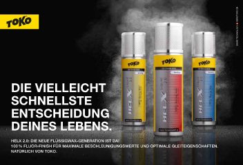 WWW.TOKO.CH WAx 112 Die vielleicht schnellste entscheiDung Deines lebens. HelX 2.0: die neue FlüssigWaX-generation ist da! 100 % Fluor-FinisH Für maXimale BescHleunigungsWerte und optimale gleiteigenscHaFten. natürlicH von toKo. Besuchen Sie unseren Onlineshop: