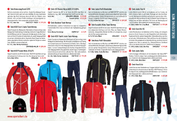 1 SwixRennanzugRaceX2015 4 SwixLSVParadeMützeAKER2013/2014 7 SwixJackeProFitRevolution A SwixJackeStarXC ® Die Besten entscheiden sich für das Beste -Original Team Norwegen Rennan- Original Teammütze des NSF für die Saison 2013/2014! Swix Mütze mit Durch die Kombination von Microfaser und WINDSTOPPER entstehen eine Leichte Microfaserjacke STAR XC zum Aufwärmen und fürs Training, mit zug! Fantastisch leicht, weich und enorm dehnfähig. Der neue, revolutionäre Hauptsponsor Logo „ Aker“ und norwegischem Schriftzug an der Seite. optimale Windundurchlässigkeit, optimale wasserabweisende Eigenschaften Stretch-Einsätzen hinten, an den Seiten, Ellenbogen und unter den Armen. zweiteilige Swix Mesh-Rennanzug überrascht durch die Fähigkeit seines Farbe:Red SW46514-900AK € 29,95 und Atmungsaktivität. Design-Refexionselemente für mehr Sichtbarkeit im Lasercut-Belüftung unter den Armen und am Rücken, geformte Arme, Refe- Materials, Luft in der Mesh-Struktur einzufangen, mit hervorragenden Iso- Sonderpreis € 20,00 Dunkeln, formgenähte Ärmel für mehr Bewegungsfreiheit. xionselemente, Mesh und Biesen, für mehr Sichtbarkeit. Band mit Stopper am lationseigenschaften. Keine unangenehm einengenden Nähte. Gr.S-XL,Farben:Red,Aqua SW15131 € 229,00 unteren Saum und hinten, wasserfeste iPod-Tasche mit Kabelausgang und Gr.S-XL,Farbe:Red SW32521-90001 € 279,00 5 SwixHeadoverTeamNorway 8 SwixVersatileMützeTeamNorway Loop für Kopfhörer. Wasserabweisend und windundurchlässig. SW12641 € 159,00 Gr.S-XXL,Farben:Red,CrazyBlack 2 SwixNSSFStarXJackeTeamNorway Multifunktionales, nahtloses Schlauchtuch mit Logos des norwegischen Original Teammütze des NSF für die Saison 2014/2015! Swix Mütze mit Logo Bekleidung Men Teamverbandes NSSF. Kann als Halstuch oder Kopfbedeckung getragen Original Teamjacke des Norwegischen Skiverbandes mit Sponsorenlogos sowie werden. und norwegischem Schriftzug an der Seite. Mütze aus Polyknit-Material , B SwixHoseStarXC Norwegischen Skiverbandslogo. Hochwertige, technische 3-lagige Membran-/ Farbe:NorwayTeamdesign SW70161 € 9,99 elastisches, atmungsaktives Material. Die Mütze ist so designt, dass sie gut Leichte Microfaserhose zum Aufwärmen und fürs Training, mit strategisch Softshell Warmup Jacke fürs Training oder als Aufwärmjacke an kalten Tagen. über die Ohren gezogen werden kann. platzierten Stretch-Einsätzen für mehr Beweglichkeit und Luftzirkulation. Jacke mit Stretch-Einsätzen in Roubaix hinten, die sowohl Bewegungsfreiheit 6 SwixNSSFStarlitJackeTeamNorway Gr.56,58,Farbe:Black SW46501 € 24,95 Vorgeformte Knie für optimale Beweglichkeit, Seitenreißverschluss vom Knie als auch gute Luftzirkulation bieten. Vorgeformte Ärmel, Kragen aus komfor- an nach unten, Refexionselemente, Mesh und Biesen für mehr Sichtbarkeit tablem, gepolstertem Material, elastisches Zugband mit Stopper am unteren Original Teamjacke des Norwegischen Skiverbandes mit Sponsorenlogos sowie im Dunkeln. Wasserabweisend und windundurchlässig, elastischer Bund mit Norwegischen Skiverbandslogo. Microfaserjacke zum Aufwärmen und Training, 9 SwixHoseProFitRevolution Saum, winddicht und wasserabweisend. mit strategisch platzierten Stretcheinsätzen an Rücken, Seiten, Ellenbogen, Durch die Kombination von Microfaser und WINDSTOPPER entstehen eine Zugband an der Taille für optimalen Sitz, Silikonbeschichtetes Elastikband ® Gr.S-XL,Farbe:NorwayTeamdesign Unterarmen und Brust für mehr Bewegungsfreiheit und optimale Atmungsfä- optimale Windundurchlässigkeit, optimale wasserabweisende Eigenschaften unten an den Beinabschlüssen für Stabilität bei der Bewegung. SW90025-ML35 € 229,00 Gr.S-XXL,Farben:Black,NewNavy SW22861 € 99,00 higkeit. „Lasercut“ Lüftungsöffnungen unter dem Arm, formgenähte Ärmel für und eine optimale Atmungsaktivität. Design-Refexionselemente für mehr SW25111 € 149,00 C SwixJackeGeilo 3 SwixNSSFParadeMütze2014/15 mehr Bewegungsfreiheit, extra gepolsterter, weicher Kragen, Festziehmöglich- Sichtbarkeit im Dunkeln, formgenähte Knie für mehr Bewegungsfreiheit. keit mit Strick an der unteren Kante, zahlreiche Print-, Naht-und Innendetails, Gr.S-XXL,Farben:Black,NewNavy Original Teammütze des NSF für die Saison 2014/2015! Swix Mütze mit Logo windundurchlässig und wasserabweisend, refektierende Details. Leichte dreilagige Softshelljacke mit der bekannten Swix Hydra-VENT™ und norwegischem Schriftzug an der Seite. Nur solange der Vorrat reicht! Gr.S-XL,Farbe:NorwayTeamdesign SW15121 € 179,95 Membran. Perfekt für ruhigere Touren, unabhängig welchen Aktivitätsniveaus. Farbe:BrightWhite SW46549 € 29,95 Lycra-Einsätze für mehr Bewegungsfreiheit, refektierende Details. 131 Gr.S-XXL,Farbe:Black/Aqua SW12221 € 99,00 6 7 D SwixHoseGeilo Leichte Hose aus einer Kombination aus 3-lagigem Softshell und Lycra. Das Softshellmaterial enthält die bekannte Swix Hydra-VENT™ Membran. Perfekt für ruhigere Touren, unabhängig welchen Aktivitätsniveaus. Lycra-Einsätze für mehr Bewegungsfreiheit, refektierende Details. Gr.S-XXL,Farbe:Black SW22181 € 89,00 C A B 9 D 8 www.sportalbert.de
