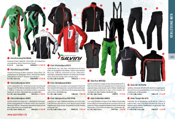 5 2 8 9 Bekleidung Men 4 3 7 1 B 149 1 SilviniRennanzugFALCONARA Rennanzug mit hohem Tragekomfort. Extrem leichtes, sehr aerodnamisches und atmungsaktives Material. Hochelastisches Polyamid. Gr.XS-XL Farbe:Grün SIRSM411 € 159,95 5 SilviniWindshelljackeMUTTA 2 SilviniRennanzugSCANDO SILVINI Windshell Jacke. Power-Therm– Softshellmaterial mit der wasser- 6 dichten und atmungsaktiven 4fex-Membran. Isoliertes Fleece-Innenfutter. Funktioneller Rennanzug mit hohem Tragekomfort. Extrem leichtes, sehr Wassersäule: 10.000 mm, reflektierende Accessoires, Reißverschluss- aerodynamisches und atmungsaktives Material. Hochelastisches Polyamid. Rückentasche, atmungsaktives Rückenteil, zwei Seitentaschen mit Reißver- Sublimationsdruck, verlängertes Rückenteil, Silicon-Abschlüsse. schluss, Brusttasche, sportlicher Schnitt, abnehmbare Ärmel. Gr.S-XXL,Farbe:Grün SIRSM505 € 129,95 Gr.S-XXL,Farbe:Schwarz/Rot SIMJ426 € 129,95 A 8 SilviniHoseMOVENZA 3 SilviniSoftshelljackeROCCA 6 SilviniSoftshellwesteBIANCA Elastische Stretchhose für Langlauf und Rad. Elastische Membrane DTX (4- Ideal für Langlauf und Rad. DTX – Softshellmaterial mit der wasserdichten und Softshellmaterial mit der wasserdichten und atmungsaktiven Membran W- Wege Stretch). Wasserdicht und atmungsaktiv durch TX Thermomaterial mit A SilviniShirtALTISSIMA atmungsaktiven W-Proof Membran. Innenfutter mit textilem Griff. Wassersäu- Proof. Innenschicht mit Bambusstruktur. Aus leichtem Material und Fleecefüt- aufgerautem Fleece auf der Innenseite sorgt für effektiven Schweißtransport Sportliches, funktionelles Shirt mit Front RV, ideal für den Langlauf geeignet. le: 10.000 mm, 2 Seitentaschen, Laser Perforation am Rücken, atmungsaktive terung, 2 Seitentaschen, Laser Perforation am Rücken, atmungsaktive Einsätze und gute Isolation. Eine Rückentasche, Zipper am Bein, Flachnähte, Anti- Isoliertes Material mit atmungsaktivem Fleece auf der Innenseite. Effzienter Einsätze unter den Armen, refektierendes Logo, verschweißte Nähte. unter den Armen, refektierendes Logo. rutschbänder aus Silikon, Kordelzug, refektierendes Logo. Schweißtransport und Wärmeisolation. Gr.S-XXL,Farbe:Schwarz/Weiß SIMJ416 € 129,95 Gr.S-XXL,Farbe:Schwarz SIMJ424 € 89,95 Gr.S-XXL,Farbe:Schwarz SIMP53 € 79,95 Gr.S-XXL,Farbe:Schwarz SIMJ419 € 54,95 4 SilviniSoftshelljackeCIAUPA 7 SilviniSkilanglaufHosePROFORMA 9 SilviniSoftshellhoseBORGO B SilviniThermalShirtALTO Sportliche Softshell Jacke. Power-Therm– Softshellmaterial mit der wasser- Langlaufhose mit Trägern. Windbreaker-winddichtes und leichtes Power- Cross Country Softshellhose mit legerem Schnitt. Windproof Thermomaterial Funktionelles Shirt mit durchgehenden Front RV. Ideal als 2. Schicht zum dichten und atmungsaktiven W-Proof Membran. Isoliertes Fleece-Innenfutter. Therm-Material mit aufgerautem Fleece auf der Innenseite sorgt für effektiven mit wasserdichten und atmungsaktiven Membran. Innenfutter mit Fleece und Langlauf geeignet. Power-Therm-Material mit aufgerautem Fleece auf der Wassersäule: 8.000 mm, 2 Seitentaschen, atmungsaktive Einsätze unter den Schweißtransport und gute Isolation. Durchgehender RV am Bein, Kordelzug, textilem Griff. Äußerst atmungsaktives Material mit hoher Elastizität und guter Innenseite sorgt für effektiven Schweißtransport und gute Isolation. Flach- Armen, refektierendes Logo, verschweißte Nähte. refektierendes Logo. Wärmeisolation. 2 Seitentaschen mit Reißverschluss, refektierendes Logo. nähte, refektierende Elemente. Gr.S-XXL,Farben:Schwarz,Rot SIMJ422 € 129,95 Gr.S-XXL,Farben:Schwarz,Grün SIMP322 € 99,95 Gr.S-XXL,Farbe:Schwarz SIMP324 € 84,95 Gr.S-XXL,Farbe:Schwarz/Rot SIMJ427 € 59,95 www.sportalbert.de