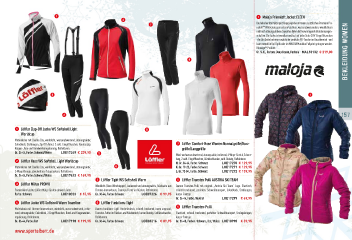 1 1 MalojaPrimaloftJacketELEEN 4 7 Die federleichte Multisport Kapuzenjacke mit einer zusätzlichen Premium Pri- maloft Wattierung aus extrem leichten, wasserabweisendem, winddichtem ® und hoch atmungsaktiven Superfne Nylon hat hervorragende Islolationseigen- schaften. Die Jacke ist wendbar und hat auf jeder Seite 2 RV-Eingriffstaschen -die Uni Seite hat eine zusätzliche vertikale RV-Tasche im Brustbereich -und kann sowohl in Uni Optik oder im MALOJA Marokko Fullprint getragen werden. ® Bluesign Product. Gr.S-XL,Farben:DeepOcean,Fuchsia MAL18132 € 219,00 Bekleidung woMen 9 3 1 2 157 1 LöfferZipp-OffJackeWSSoftshellLight 8 Worldcup Materialmix mit Double Dry, winddicht, wasserabweisend, atmungsaktiv, Colorblock, Stehkragen, Zip-Off-Ärmel, 2 seitl. Eingrifftaschen, Kontrastzip, 7 LöfferComfort-HoseWomenNormalgröße/Kurz- Kragen-, Arm-und Bundweitenregulierung, Refektoren. größe/Langgröße Gr.36-44,Farbe:Schwarz/Weiss LOE17249 € 239,95 5 Wind-und wasserabweisend, atmungsaktiv, isolierend, 4-Wege-Stretch, Schnee- 2 LöfferHoseWSSoftshellLightWorldcup fang, 2 seitl. Eingrifftaschen, Gürtelschlaufen, seitl. Beinzip, Refektoren. LOE17270 € 129,95 N:Gr.36-44,Farbe:Schwarz Materialmix mit Double Dry, winddicht, wasserabweisend, atmungsaktiv, 6 K:Gr.19-23,Farbe:Schwarz LOE17271 € 129,95 2-Wege-Beinzip, abnehmbares Trägersystem, Refektoren. L:Gr.72-84,Farbe:Schwarz LOE17272 € 139,95 Gr.36-44,Farbe:Schwarz/Weiss LOE17623 € 169,95 5 LöfferTightWSSoftshellWarm 8 LöfferTranstexPulliAUSTRIASKITEAM 3 LöfferMützePROMO Winddicht (Gore-Windstopper), isolierend und atmungsaktiv, Rückseite aus Damen Transtex-Pulli mit original „Austria Ski Team“ Logo. Elastisch, Formschöne leichte Löffer Mütze für den aktiven Läufer. Thermo-Innenvelours, Transtex-Futter im Rücken, Refektoren. schnell trocknend, perfekter Schweißtransport, Colorblock, Stehkragen, Farbe:Schwarz LOE18023 € 15,95 Gr.36-44,Farbe:Schwarz LOE07326 € 99,95 kurzer Frontzip. Gr.36-44,Farbe:Neutral LOE17299 € 69,95 4 LöfferJackeWSSoftshellWarmTeamline 6 LöfferFunktions-Tight Materialmix mit Thermo-Innenvelours, winddicht, wasserabweisend, isolie- Damen Funktions-Tight. Hochelastisch, schnell trocknend, innen angeraut, 9 LöfferTranstex-Pulli rend, atmungsaktiv, Colorblock, 2 Eingrifftaschen, Bund-und Kragenweiten- Transtex-Futter im Rücken-und Kniebereich, kurzer Beinzip, Schlüsseltasche, Elastisch, schnell trocknend, perfekter Schweißtransport, Umlegekragen, regulierung, Refektoren. Refektoren. kurzer Frontzip. Gr.36-44,Farbe:Rot LOE17198 € 199,95 Gr.36-44,Farbe:Schwarz LOE03216 € 89,95 Gr.36-48,Farben:Schwarz,Rot,Weiss LOE10990 € 59,95 www.sportalbert.de