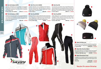 5 SilviniSoftshelljackeSANTO 7 SilviniThermalShirtCARUSO 9 SilviniHoseMIA 1 Sportliches, funktionelles Shirt mit durchgehenden Front RV. Ideal als 2. Cross Country Hose mit sportlichem Schnitt. Softshell Windproof-Thermo- Power-Therm-Softshellmaterial mit der wasserdichten und atmungsaktiven Bekleidung woMen Logo, verschweißte Nähte. SIWJ431 € 129,95 Isolation. Flachnähte, refektierende Elemente. SIWJ428 € 59,95 Wärmeisolation. 2 Seitentaschen mit Reißverschluss, refektierendes Logo. Schicht zum Langlauf geeignet. Power-Therm-Material mit aufgerautem material mit wasserdichten und atmungsaktiven Membran. Innenfutter mit W-Proof Membran. Isoliertes Fleece-Innenfutter. Wassersäule: 8.000 mm, textilem Griff. Äußerst atmungsaktives Material mit hoher Elastizität und guter Fleece auf der Innenseite sorgt für effektiven Schweißtransport und gute 2 Seitentaschen, atmungsaktive Einsätze unter den Armen, refektierendes SIWP319 € 84,95 Gr.XS-XL,Farben:Grau,Blau/Weiß Gr.XS-XL,Farbe:Rot Gr.XS-XL,Farbe:Rot 6 SilviniSoftshellwesteCROCE 8 SilviniHoseMOVENZA A SilviniHoseBORGO SoftsheLL-Windproof Hose aus Thermomaterial mit wasserdichter und Elastische Stretchhose für Langlauf und Rad. Wasserdicht und atmungsaktiv Softshellmaterial mit der wasserdichten und atmungsaktiven Membran W- Proof. Innenschicht mit Bambusstruktur. Aus leichtem Material und Fleecefüt- durch TX Thermo-Material mit aufgerautem Fleece auf der Innenseite sorgt für atmungsaktiver Membran. Innenfutter mit textilem Griff. Äußerst atmungs- terung. 2 Seitentaschen, Laser Perforation am Rücken, atmungsaktive Einsätze effektiven Schweißtransport und gute Isolation. Zipper am Bein, Flachnähte, aktives Material mit hoher Elastizität und guter Wärmeisolation. Locker unter den Armen, refektierendes Logo. geschnitten, 2 Seitentaschen mit Reißverschluss. Antirutschbänder aus Silikon, mit Kordelzug, refektierendes Logo. SIWJ425 € 89,95 SIWP55 € 79,95 Gr.XS-XL,Farbe:Schwarz Gr.XS-XL,Farbe:Schwarz Gr.XS-XL,Farbe:Rot 8 SIWP325 € 84,95 2 6 164 5 A 3 1 AdidasDSVMützeLurex Hochwertig gestrickte Adidas-Mütze mit DSV-Logo und durchzogenem Lurex- Faden. Sehr angenehmer Tragekomfort durch ein eingenähtes Fleeceband. Gr.M,Farbe:Black ADIF80787 € 44,95 2 AdidasMützeMagdalenaNeuner 9 Winter Special! Adidas Original Mütze Magdalena Neuner! Sehr angenehmer Tragekomfort durch ein eingenähtes Fleeceband. Super warm und weich! Gr.M,Farben:White,NightShade ADIG920 € 49,95 3 AdidasDSVStirnbandCrochet Das Highlight in der DSV Kollektion. Hochwertiges, grob gestricktes Stirnband mit DSV Logo und aufgesticktem Adidas Logo an der Seite. Super warm, super gemütlich! 7 Farbe:Black ADIO94202 € 34,95 Sonderpreis € 24,95 Besuchen Sie unseren Onlineshop: