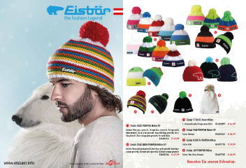 mützen B C G 198 D H I E F D EisbärSTAROSNeonMütze F.:Grün-weiß-gelb,Orange-grün-türkis EI403097 € 44,99 B EisbärSTARPOMPONMützeSP Farben:Pink-graugestreift,Orange-blaugestreift,Rot-gestreift, E EisbärFANPOMPOMMützeSP Mint-gestreift,Blau-grün-gestreift,Rosa-hellblaugestreift,Grün- Farbe:Schwarz EI403349 € 54,99 lilagestreift,Gelb-orange-pinkgestreift,Rot-weiß-blau EI403346 € 49,99 F EisbärKUNITAPOMPONMütze C EisbärSTARNEONPOMPONMützeSP Farbe:Grün EI407718 € 39,99 Farben:Neonpink-grüngestreift,Neonblau-grüngestreift,Grünblau- G EisbärJAYPOMPONMütze orangegestreift,Schwarz-grüngestreift,Schwarz-orangegestreift EI403336 € 49,99 Farben:Rot,Blau,Schwarz EI407705 € 34,99 Besuchen Sie unseren Onlineshop: