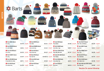 1 2 3 4 5 6 7 8 mützen 9 A B C D E F G I J H L K M 202 N O 1 BartsNADALBeanie 7 BartsBOOMBeanie D BartsNICKBeanie J BartsWALTERBeanie Farbe:Navy BA1593 € 24,99 Farbe:White BA1474 € 29,99 Farbe:OldBlue BA1806 € 24,99 Farben:Ochre,DarkHeather BA1498 € 26,99 2 BartsWILHELMBeanie 8 BartsBERMUDABeanie E BartsGRAINBeanie K BartsGRIZLYBeanie Farbe:DarkHeather BA0856 € 24,99 Farbe:HeatherGrey BA1645 € 26,99 Farben:Black,Taupe BA0079 € 24,99 Farbe:Camel BA0541 € 26,99 K BartsGRIZLYBeanie Farbe:Camel BA0541 € 26,99 3 BartsCOLTONBeanie 9 BartsMAXBeanie F BartsJORDANBeanie L BartsWINNABeanie Farbe:Yellow BA1569 € 29,99 Farbe:HeatherGrey BA1639 € 26,99 Farben:Blue,White,Red BA1101 € 24,99 Farbe:Taupe BA1698 € 32,99 4 BartsFARRELLBeanie A BartsZOSABeanie G BartsLOGCABINBeanie M BartsOLIVIABeanie Farbe:Grey BA1597 € 29,99 Farbe:FluoPink BA1085-08 € 24,99 Farbe:OldBlue BA1105 € 24,99 Farbe:DarkHeather BA1710 € 34,99 5 BartsORLANDOBeanie B BartsRIVERBeanie H BartsFEDDEBeanie N BartsCLAIREBeanie Farben:DarkHeather,Black BA0744 € 24,99 Farbe:Yellow BA1638 € 26,99 Farben:Navy,Cream BA0575 € 29,99 Farben:Black,Cream BA1385 € 34,99 6 BartsBASEBeanie C BartsISACBeanie I BartsGIOBeanie O BartsMulticolorRETROSKIBuff Farbe:HeatherGrey BA1582 € 24,99 Farbe:Navy BA1665 € 22,99 Farbe:Black BA0748 € 19,99 Farben:Blue,Aqua BA1887 € 9,99 Besuchen Sie unseren Onlineshop: