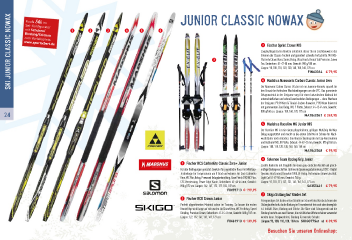 SkI JuniOr clasSic nowax zum Vorteilspreis: 1 2 3 4 5 6 JuniOr clasSic nowax Kaufe Ski im Set-Konfgurator mit Schuhen/ Bindung/Stöcken www.sportalbert.de 3 FischerSprintCrownNIS Langlaufbegeisterten Kindern erleichtert dieser Ski in Leichtbauweise das Erlernen der Classic-Technik und garantiert schnelle Fortschritte. Mit NIS- 7 Platte Air Chanel Kern, Sintec Belag, Ultra Finish, Rental Tail Protector, Crown Tec, Seitenform: 51-47-50 mm, Gewicht: 980 g/150 cm. Längen: 90, 100, 110, 120, 130, 140, 150, 160, 170 cm FIN63314 € 79,95 4 MadshusNanosonicCarbonClassicJuniorZero Der Nanosonic Carbon Classic JR Zero ist ein Junioren-Rennski speziell für den Einsatz bei kritischen Wachsbedingungen um die 0°C. Das gummierte Belagsmaterial in der Steigzone sorgt für einen fantastischen Abdruck bei unterschiedlichen und schnell wechselnden Bedingungen – ohne Wachsen der Steigzone. PR 90 Kern & Triaxial-Carbon-Bauweise, P190 Nano Universal mit gummiertem Zero Belag, NIS 7 Platte, Sidecut: 44-42-44 mm, Gewicht: 24 800 g/160 cm. Längen: 150, 160, 170, 175 cm MA1840041 € 249,95 5 MadshusRacelineMGJuniorNIS Der Raceline MG ist mit einem pfegeleichten, griffgen MultiGrip No-Wax Belag ausgestattet und macht so die ersten Schritte im Schnee für Nach- wuchsläufer noch einfacher. Ein robuster Einstiegsski mit Cap-Konstruktion und Holzkern! NIS JR Platte, Sidecut: 44-42-43 mm, Gewicht: 875 g/160 cm. Längen: 100, 110, 120, 130, 140, 150, 160 cm MA1840048 € 99,95 6 SalomonTeamRacingGripJunior 1 FischerRCSCarbonliteClassicZero+Junior Leichte Kinderski mit Steighilfe für einen ganz einfachen Abstoß und gleich- Für alle Bedingungen gerüstet: Zweitski für jugendliche Racer mit Weltcup- mäßige Gleiteigenschaften. Optimierte Spannungsabstimmung, D2FC - Digital Technologie für Temperaturen um 0 Grad und wärmer. Air Core Carbonlite Dynamic Flex Control, Densolite 1000, G1-Belag, Performance Universalschliff, Kern, WC Plus Belag, Prewaxed Belagsbehandlung, Race Finish DTG WC Plus, Light Cut 51-47-50 mm, Gewicht: 760 g. CFC Vermessung, Power Edge Kante, Seitenform: 41-44-44 mm, Gewicht: Längen: 91, 101, 111, 121, 131, 141, 151, 161, 171 cm 890 g/172 cm. Längen: 162, 167, 172, 177, 182, 187 cm SA355441 € 79,95 FIN59713 € 199,95 7 SkigoSkilanglaufKinderSet 2 FischerRCRCrownJunior Preisgünstiges Set für die ersten Schritte im Schnee! Ideal für das Erlernen der Perfekt abgestimmtes Material schon im Training: So lassen die ersten Skilanglauftechnik, da die Bindung im Fersenbereich frei nach oben beweglich Rennerfolge nicht lange auf sich warten. Air Chanel Kern, WC Pro Belag, Speed ist. Enthält Skier, Bindung und Stöcke. Die Skier sind Schuppenski und die Grinding, Premium Crown, Seitenform: 41-44-44 mm, Gewicht: 860 g/147 cm. Bindung besteht aus zwei Riemen, die mit üblichen Winterschuhen verwendet Längen: 127, 137, 147, 157, 167, 177 cm werden kann. Steigwachsfrei, Bindung für normale Schuhe. FIN61913 € 139,95 Längen:90,100,110,120,130cmSKIGO77Set ab € 39,95 Besuchen Sie unseren Onlineshop: