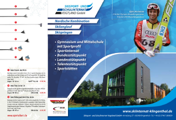 5 Björn Kircheisen Björn Kircheisen Björn Kircheisen Björn Kircheisen Björn Kircheisen 3-f 3-f 3-f 3-f 3-f 3-f 3-facher Olympia-Medaillengewinner,acher Olympia-Medaillengewinner,acher Olympia-Medaillengewinner,acher Olympia-Medaillengewinner,acher Olympia-Medaillengewinner,acher Olympia-Medaillengewinner,acher Olympia-Medaillengewinner,acher Olympia-Medaillengewinner, 3-facher Olympia-Medaillengewinner, 6 3-f 9-f 9-f 9-facher WM-Medaillengewinneracher WM-Medaillengewinneracher WM-Medaillengewinneracher WM-Medaillengewinneracher WM-Medaillengewinner 9-f 9-f 9-facher WM-Medaillengewinner Nordische Kombination 7 Skilanglauf langlaufStöcke 8 Skispringen 9 Gymnasium und Mittelschuleymnasium und Mittelschuleymnasium und Mittelschuleymnasium und Mittelschule • G G G mit Sportprofil mit S mit S mit Sportprofilportprofilportprofil A S Sportinternatportinternat • Sportinternat Bundesstützpunkt • Bundesstützpunkt Bundesstützpunkt Bundesstützpunkt B 55 Landesstützpunkt • Landesstützpunkt Talentestützpunkt • Talentestützpunkt Sportstätten • Sportstätten 9 SwixClassicJustKlick Nachfolger unseres Bestsellers Classic Pro. Ist wie der Vorgänger mit der ausklickbaren Just Klick Schlaufe und PC Griff ausgestattet. Mit bewährtem großen 97er Rennteller, PC Griff, Just Click Komfortschlaufe, 5086 Alumi- nium Schaft. Längen:125-165cm SWET104-02 € 39,95 A SwixTriacJunior2.0 Composite Schaft speziell für jugendliche Rennläufer in Triac Optic. Mit Kork- gefülltem PCU Griff, Swix Triac Schlaufe und großem 97 Teller. ® Längen:105-135cm SWJCT00 € 59,95 B SwixSkilanglaufstockStarJunior Aluminiumstock für Junioren, mit PC-Griff und neu entwickelter X-Fit Schlau- fe. Die X-Fit Schlaufe ist intuitiv einfach zu verwenden. Einfach hineinschlüp- fen wie in eine ganz traditionelle Schlaufe. Dennoch unterstützt sie bei der Entwicklung einer guten Skitechnik. Mit großem ’97 Rennteller. Durchmesser: Griff 16 mm, Teller 10 mm. Längen:100-135cm SWJL104 € 29,95 www.skiinternat-klingenthal.de www.sportalbert.de Skisport- und Schulinternat Vogtland GmbH • Amtsberg 27 • 08248 Klingenthal • Tel. + 49 (0) 37467 289839 az_skiinternat_171x160zzgl3mm.indd 1 14.11.2012 14:01:30