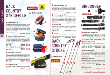 Back 1 AsnesPolarExpedition2teilig Bindungen Besonders Robuster 100 % Carbon Stock, welcher Dank Teleskopverschluss auf Länge variabel einstellbar ist. Kevlarverstärktes Unterteil. Griff aus wei- country chem EVA/Gummi mit gut gepolsterten, langen Schlaufen, welche sich auch Back country Steigfelle 2 AsnesSpitsbergenExpedition AS540198 € 119,00 3 1 2 mit dicken Handschuhen gut laufen lassen. Stock vieler Expeditionen. Gefertigt aus Hochwertigem 100% Carbon /Kev- lar Material - für die höchsten Anforderungen an Festigkeit bei minimalem Gewicht. Langezogener EVA Gummigriff mit weiter Schlaufe für maximale AS540202 € 119,00 Längen:130-160cm 1 MadshusIntelligripFell Die innovativen Intelligrip-Felle bestehen aus einem Mohair-Fell, das direkt 1 Flexibilität- auch mit dicken Handschuhe fahrbar. Großer Tiefschneeteller. 3 LekiCimaCarbon unter der Bindung am Belag angebracht ist und auf jedem Untergrund opti- 4 male Griffgkeit bringt. Für maximale Gleitleistung auch bei schwierigsten Hochwertiger Stock aus superleichtem Carbon (372 g), mit durchdachter Langlauf-, Touren- und Nordic Cruising-Bedingungen sorgt der Rennbelag Ausstattung, 2 Komponenten Shark Cork Griff, Easy Strap, Flexspitze mit aus Polyethylen. Ideal wenn maximale Steigfähigkeit gefordert wird. (z.B. großem Tiefschneeteller. steile Anstiege oder Laufen mit Pulka) Längen:120-150cm LE633-4090 € 159,95 5 Größen: 185 cm, 205 cm 2 1 RottefellaSuperTelemark75mm MA1813000 € 69,95 4 LekiTahoma Der Klassiker unter den Back Countrybindungen. Super Telemark 75 mm 58 2 AsnesNylon-SyntetikKurzfellSkinlock Preisgünstiger robuster Alustock mit CorTec Griff, Biathlonschlaufe und ist eine Drei-Pin Bindung entworfen für niedrige Schuhe. Optimale Per- Tourenteller zum Back Country. Leichter fester Aluschaft aus 7075 Aluminium. formance und top Bewegungsfreiheit bei geringstem Gewicht. passend für Das System gibt ihnen den nötigen Grip für steile Berge oder Laufen mit Längen:130-160cm LE633-4938 € 49,95 Langlaufschuhe mit 75 mm Backen, z.B: Fischer BCX 875 Boot, Bindungstyp: Pulka. Einfach zu installieren und zu entfernen. Hergestellt aus 100% Nylon 3 Pin 75 mm NN, Gewicht: 375 g/Paar ROT10100020 € 69,95 für langlebige Griffgkeit. Produziert von Colltex, einem der widerstandsfä- Back higsten Felle, hergestellt aus 100% Nylon. Passend auf alle Asnes Ski mit 2 RottefellaBCMagnumNNN Skinlock System SLS. Bewährt für Tiefschnee und Touren längerer Art im offenen Gelände. Bedie- Breite:35mm AS540208 € 35,00 3 country nerfreundlicher Aus-/Einstieg durch breitem Klapphebel. Extra breite 67 mm Breite:45mm AS540209 € 39,00 Bindungsplatte für Stabilität und beste Steuerung. Passend für alle Schuhe Breite:45mmSpecialfürSkiAmundsenExpedition mit NNN-BC Sohle. Gewicht 550 g. ROT1861011 € 69,95 AS540225 € 49,00 Breite:60mm AS540210 € 49,00 Stöcke 3 RottefellaBCAUTONNN 3 AsnesMohairKurzfellSkinlock Einer der besten BC-Bindung am Markt. Ihre Geometrie wurde entwickelt, Kurzes Mohair Steigfell für höchste Ansprüche. Hauptvortell gegenüber Syn- um beste Führungs- und Stabilitäts- Eigenschaften für das Gelände zu ge- währleisten. Farbe: schwarz, Gewicht: 455 g/Paar, Bindungsfex: 40 Shore, thetik Fell sind die höhere Haltbarkeit sowie die besseren Gleiteigenschaften. Mechanismus: Automatik RORJD1014 € 69,95 Produziert von Colltex in der Schweiz, hergestellt aus 100% Mohairfell der Mohairziege. Dieses Fellhaar ist innen hohl und dadurch auch bei grosser 4 4 SalomonXAManualSNS Kälte sehr geschmeidig. Passend auf alle Asnes Ski mit Skinlock System SLS. Breite:45mm AS540241 € 49,00 Mehr Stabilität und Kontrolle durch verstärkte breite Achse und Steuerkanten. Breite:60mm AS540242 € 59,00 Verstärkte breite Achsen, Steuerkeil, Flex: 185, durchgehende Führungsplatte. 4 3 2 1 Passend nur für SNS Backcountry-Schuhe X Adventure. 4 FischerEasySkinFell SA327028 € 49,95 Fischer Steigfell aus Mohair-Mix passend für Fischer Easy Skin Modelle. 5 SalomonXAAuto Länge: 70 cm FIK50014 € 29,95 Wie XA Manual jedoch mit Automatik Einstieg. SA327029 € 44,95 Besuchen Sie unseren Onlineshop: