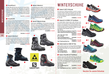 WinterSchuhe 6 FischerOfftrack5 9 SalomonX-Adventure6 Wer eigene Wege abseits der Loipe sucht, muss sich auf seinen Schuh ver- Für passionierte Backcountry-Langläufer. Ein Schuh für alle Verhältnisse, im 1 lassen können. Strapazierfähiges Nylon Außenmaterial und der gummierte ungespurten Gelände wie auch in der Loipe, Sicherheit und Stabilität bei bester 1 SalomonS-LABXT6Softground Beweglichkeit! Sehr viel Halt, der durch den kräftigen Schaft, die Halbgama- Sohlenrand trotzen erhöhter Beanspruchung. Integrated Gaiter und Wool Lining WinterSchuhe komfortablen Einstieg. Für Stabilität in wechselndem Gelände sorgt Ankle Ideal bei Abfahrten! Hervorragende Geheigenschaften durch Naturgummi- ® und weichen Untergrund ausgelegt. Die Kombination eines super leichten 2 A sche und die halbfexible Sohle hervorragenden Schutz und Komfort bietet. halten die Kälte draußen und die Füße warm. Easy Entry Loops ermöglichen Diese Version unserer S-LAB Racing Laufschuhs ist speziell für matschigen Außensohle beim Laufen ohne Ski! Großzügige 106mm Leistenbreite. SNS Support Cuff. Passend für NNN T3/R3 Classic Bindungen (nicht verwendbar und nahtlosen Schafts mit einer stabilen Sohlenkonstruktion sorgt für bes- X-ADV rutschfeste Gummi-Außensohle, Stützender fexibler Schaft, Halb- für BC NNN Bindung) sere vertikale Dämpfung, hervorragende Atmungsaktivität und eine präzise FIS17711 € 129,95 gamasche, Abdecklasche mit zentralem Reißverschluss, Gamaschenhaken, Gr.:36-49 Passform. Farbe: Black/Red. Quicklace Schnellschnürrsystem, Thinsulate, Gewicht: 1638 g/Paar. SA354564 € 169,95 Gr.:7,5-11,5 SA246844 € 139,95 7 FischerBCX875 Gr.:3,5-13 ® Das Topmodell in der Back Country Serie passend für NN 75 mm Bindungen. Sicher und stabil auch durch extremes Gelände. Er schützt zuverlässig vor Dieser bewährte Allwetter- Adventureschuh mit GORE-TEX wird für 2014 ® Nässe und Kälte. Perfekte Passform für mehr Ausdauer. Mit Vibram 75 mm A SalomonX-AdventureEscape 2 SalomonXAPro3DGORE-TEX Men/Women 2 B Schuh für jedes Langlaufabenteuer in als auch abseits der Loipen. Sohle: noch besser. Vom ersten Schritt bis zur Überschreitung der 1000 km-Marke Sohle. Neben dem ausgezeichneten Kälte- und Witterungsschutz durch die SNS PILOT 2, Schaft: Smart Struktur mit beweglichem Schaft, voll integrier- überzeugt er durch unglaubliche Passform, verbesserte Haltbarkeit und ver- ® ® Hipora-Membran besticht dieses Modell mit individuellen Einstellmöglichkei- te Gamasche, Schnürabdeckung mit zentralem Reißverschluss, Gamaschen- lässlichen Grip. Bessere Dämpfung und leichterer Übergang von der Straße ten durch Ratschenschnallen über dem Spann. Eine ergonomische Kunststoff- haken, Schnürrung: Quicklace, Fütterung: Thinsulate, Umhüllung: Sensift, auf unbefestigte Wege gepaart mit unübertroffener Stabilität. Der Schuh für 2 c/f Carbon-Gamasche verleiht zusätzliche Stabilität. Griffge Vibram-Außensohle Gewicht: 1165 g/Paar. Passend auf alle Salomon SNS Klassik und Touren jede Gelegenheit und alle Jahreszeiten. Gewicht: 403 g. die auch längeres Gehen ermöglicht. Weit hochgezogener RV zum einfachen Langlaufbindungen. (nicht verwendbar für BC SNS Bindungen) M:Gr.:7,0-12,5 Ein- und Ausstieg, Gummizug als Abschluss zum Bein und Gamaschenhaken. Gr.:3,5-13 SA368183 € 139,95 FarbeA:DeepBlue/Gentiane/BrightRed SA366791 € 144,95 Gewicht: 2410 g FarbeB:SinopleGreen/GrannyGreen/GeorgeOrange-X Gr.:38-47 FIS12812 € 239,95 SA366792 € 144,95 60 8 SalomonX-Adventure8 8 FarbeC:Black/Black/Pewter SA120481 € 144,95 W: Gr.3,5-7,5UK Das Topmodell in der Back Country Serie! Ein warmer, stützender Schuh mit FarbeD:Black/Bordeaux/Flashy-X SA366801 € 144,95 extra Wasserfestigkeit und praktischem Quicklace Schnürsystem. Nahtlos- FarbeE:BossBlue/DarknessBlue/Papaya-B konstruktion, Energyzer Schaft und hohe Gamaschen für Backcountry Aben- SA368924 € 144,95 2 d teuer. Stützender Energyzer, Quicklace, voll integrierte Gamasche mit Gama- FarbeF:Black/Asphalt/LightGrey SA308944 € 144,95 schenhaken, Nahtlos verschweißt, Thinsulate Thermofutter, Gewicht: 1840 g. ® 2 e Gr.:3,5-13 SA246843 € 179,95 3 SalomonSpeedcross3GORE-TEX Men Leichter, schneller und aggressiver Trail Running Schuh für den Wettkampf 9 oder für High Speed Training. Diese Saison brilliert dieser bei den Athleten äußerst beliebte CROSS-SPEED mit der Thermoregulierung von GORE-TEX . ® Gr.7,0-12,0UK Farbe:Green/Green/Yellow SA356467 € 144,95 Farbe:Black/Black/Metalic-X SA356467 € 144,95 ® 4 SalomonXUltraGORE-TEX Men/Women Technischer Trailschuh mit stabiler Sohlenkonstruktion, extra Schutz und GORE-TEX . Ideal für temporeiche Hiking-Touren in abwechslungsreichem ® Gelände. Mit seiner stark gedämpften Energy Return Sohle ist der X Ultra A GTX ein leichter, unterstützender und athletischer Schuh, der vor allem für 7 den Einsatz auf Trails entwickelt wurde. Als athletische Alternative zum Multifunktions-Outdoorschuh. M:Gr.:7,0-12,5 3 Farbe:Black/Black/BrightBlue SA327075 € 134,95 W:Gr.:4,0-7,5 6 Farbe:Asphalt/Black/AnemonePurple SA355574 € 134,95 Besuchen Sie unseren Onlineshop: