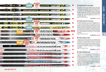 1 F MadshusNanosonicCarbonSkate Seine innovative Geometrie, der leichte PR 100X-Kern und die Triaxial Carbon- Konstruktion machen den Nanosonic Skate zu einem vielseitigen Modell für 2 unterschiedliche Schneebedingungen. Der Slight Splay, mittelharte Druckzo- nen und die Low Profle-Schaufel ermöglichen eine saubere Kraftübertragung bei minimaler Schwungmasse. emPOWER, Skate Medium Vorspannung Slight 3 Splay, PR 100X Kern & Triaxial-Carbon-Bauweise, P190 Nano Cold Belag für 0°C und kälter, CAD – Computer Aided Design, NIS 7 Platte, Sidecut: 44-43-44 mm, Gewicht: 1000 g/190 cm. langlaufSkI – skate Längen: 175, 180, 185, 190, 195 cm 4 MA1840007 € 489,95 G MadshusHypersonicCarbonSkate 5 Mit erhöhter Kraftübertragung bei vermindertem Schwunggewicht und sei- ner Triaxial-Carbon-Bauweise liefert das neue, aktualisierte Chassis des Hypersonic Carbon Skate die Performance eines Weltcup-Ski auf Basis des 6 preiswerteren, leichten und reaktionsfreudigen PR-90-Schaumkerns. Dank der mittelhohen und fexiblen Vorspannungslinie mit mittellangen Druckzonen ist der Ski vielseitig einsetzbar. emPOWER, Skate Medium Vorspannung Slight Splay, PR 90 Kern & Triaxial-Carbon-Bauweise, P190 Nano Universal Belag, 789 CAD – Computer Aided Design, NIS 7 Platte, Sidecut: 44-43-44 mm, Gewicht: 1050 g/190 cm. A Längen: 175, 180, 185, 190, 195 cm 9 MA1840009 € 389,95 B H MadshusMegasonicSkate Der Megasonic Skate ist der ideale Ski für Volks- und Fitnessläufer, die Wert auf Stabilität, Komfort und unkompliziertes Skaten legen. Seine brandneue C 3D-Konstruktion mit moderatem Sidecut läuft sehr leicht. Die qualitativ hochwertige Torsion-Cap-Konstruktion und der Polycell-Schaumkern ma- chen ihn zu einem leistungsfähigen Trainings- und Rennski zum günstigen D Preis. Polycellkern, P170 Belag, NIS 7 Platte, Sidecut: 44-40-44 mm, Gewicht: 1150 g/190 cm. Längen: 175, 180, 185, 190, 195 cm E MA1840013 € 259,95 I MadshusUltrasonicSkate F Der Ultrasonic ist der Einstieg in die Welt ultraleichtgewichtiger, renn- tauglicher Ski – ideal für aufstrebende Athleten. Wir haben ihn komplett überarbeitet und nutzen eine Reihe von Technologien unserer Weltcup-Ski. G Der Paulownia-Holzkern wird mit Glas- und Carbonfaser-Lagen verstärkt. Mit seiner kürzeren Schaufel, dem moderaten Sidecut sowie den Carbon- Verstärkungen reagiert und beschleunigt er sehr schnell. Der gesinterten P- H Tex 2000 Electra-Rennbelag bietet tolle Gleiteigenschaften und hohe Laufruhe. Paulowniakern mit Karbonverstärkung, P-Tex 2000 Electra-Rennbelag, NIS 3 Platte, Sidecut: 44-40-44 mm, Gewicht: 1150 g/190 cm. I Längen: 170, 175, 180, 185, 190, 195 cm MA1840015 € 199,95 www.sportalbert.de